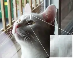 A solução mais comum é uma técnica chamada interpolação de pixels que suavemente mescla ou interpola a cor de um pixel e a cor do pixel adjacente mais próximo em altos níveis de aproximação.[4]