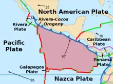 Depois da fissura, a placa foi empurrada para leste, fundindo-se em algumas partes com a placa do Caribe, num processo chamado subducção. Como consequência, a subducção influiu na astenosfera, abrindo saídas para o magma do interior, criando fileiras de vulcões na Costa Rica, Guatemala e México. Outro resultado são os terremotos recentes.
