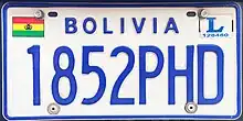 As placas de identificação de veículos na Bolívia possuem dimensões semelhantes às placas usadas nos países da América do Norte, i.e., 12 por 6 polegadas (305 x 102 mm)[1] O atual formato utiliza placas no formato 1234ABC, com a inscrição BOLIVIA na parte superior central, com ou sem a bandeira do país no canto superior esquerdo e com um esquema de cores que indicam sua utilização[2]: