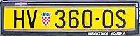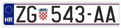 O padrão de placas de identificação de veículos da Croácia consiste em um código de duas letras específico para localidade, com o brasão de armas da Croácia em seguida e ao fim uma sequência alfanumérica de três ou quatro algarismos e uma ou duas letras.