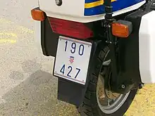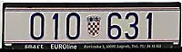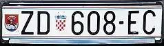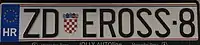 ZD representa Zadar. O emblema à esquerda é um adesivo escolhido pelo proprietário, mas de acordo com a lei croata, colar adesivos em placas é considerado falsificação de documentos.Placas regulares