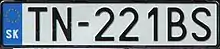 DS-125ACpode ser tanto uma placa regular para automóveis em geral, quanto uma placa de motocicleta. A única diferença é o seu tamanho. As motocicletas usam dois tamanhos diferentes, sendo ambos menores que o tamanho normal. - Placas personalizadas são opcionais na Eslováquia por uma taxa extra, sendo emitidas desde 1998.[4] O formato deve incluir o código do distrito de duas letras e outros 5 caracteres nos formatos