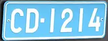 Os veículos diplomáticos de embaixadas ou dos funcionários do serviço diplomático possuem placas de fundo azul-celeste e caracteres brancos, compostas pelas letras CD ("Corpo Diplomático", original francês Corps Diplomatique) e quatro dígitos ou as letras C e um máximo de cinco dígitos.[6]