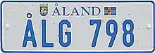 As ilhas Åland têm um modelo próprio e exclusivo de placa, formado por três letras e três dígitos, separados por um espaço. Na parte superior há, da esquerda para a direita, o brasão das ilhas, o nome ÅLAND e a bandeira. Todos os caracteres são azuis e a primeira letra é sempre Å.