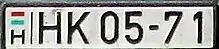 Me depois seis dígitos. Os caracteres são verdes sobre fundo branco, sem versão europeia. Expiram após três anos e não podem ser renovadas. Só pode ser usados na Hungria. - As placas de veículos lentos têm o mesmo estilo da série regular, mas começam com Y e os caracteres são vermelhos em fundo branco.