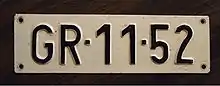 - Em abril de 2017 foram introduzidas placas cinza. [11] A placa é idêntica às placas originais do carro, mas a cor de fundo é cinza e com listras da UE em todos os casos. O objetivo era criar uma terceira placa para usuários de suportes para bicicletas, pois a lei não permitia que a placa traseira fosse movida para o suporte. O processo de obtenção de uma placa cinza foi bastante complicado e caro, portanto, o sistema foi simplificado logo após 2 meses de sua introdução. Desde junho de 2017, a placa traseira pode ser transferida para o suporte de bicicleta, o que torna as placas cinza praticamente desnecessárias, ainda pode ser solicitado. [12]
