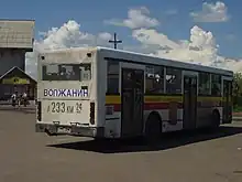 | Os veículos de transporte público (como ônibus, táxis licenciados e táxis compartilhados licenciados) têm caracteres pretos em fundo amarelo e com formato LL NNN. Como esses veículos são relativamente poucos, o código da região não muda com frequência; em Moscou, por exemplo, placas amarelas de "transporte público" ainda recebiam o código 77 em dezembro de 2009. (Nota: este tipo não deve ser confundido com as placas amarelas de aparência semelhante agora extintas, com o formato LL NNN L, que foram emitidas antes de 2002 para carros registrados para empresas estrangeiras que operam na Rússia; o último tipo fo retirado de circulação) | |