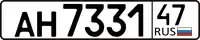 O formato atual para veículos em geral usa uma letra seguida por três dígitos e mais duas letras. Para melhorar a legibilidade dos números de carros russos no exterior, apenas um pequeno subconjunto de caracteres cirílicos que se parecem com caracteres latinos é usado, num total de 12 letras: А, В, Е, К, М, Н, О, Р, С, Т, У. Existe também um código numérico para indicar a região, embora certas regiões possam ter mais de um código e códigos de três dígitos, tais como 77, 97, 99, 177, 197, 199, 777 e 799, usados em Moscou; e 78, 98, 178 e 198 que são usados em São Petersburgo, etc. e o código internacional RUS estão incluídos, assim como a bandeira nacional (no entanto, a bandeira não foi usada em algumas das placas mais antigas deste formato, por volta de 1993, 1994). Existe um formato diferente para reboques (duas letras e quatro dígitos). As placas para motocicletas, ciclomotores e motonetas são quadradas e seu formato possui quatro dígitos na parte superior e duas letras na parte inferior. Essas placas não possuem a bandeira nacional.
