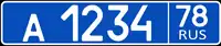 As forças policiais têm números especiais em placas de fundo azul e o formato possui uma letra e quatro dígitos. A letra significa o ramo da força policial, e seu significado pode mudar de cidade para cidade; por exemplo, em Moscou, A 1234 99 rus significa polícia de trânsito, У 1234 99 rus para radiopatrulha, O 1234 99 rus para serviço do canil da polícia etc. | |