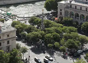 No centro da praça situa-se a Fontaine du Palmier (em português: Fonte das Palmeiras), também conhecida como Fontaine du Châtelet e Fontaine de la Victoire, um chafariz classificado como monumento histórico da França. Foi construída entre 1806 e 1808 por ordem de Napoleão Bonaparte, tendo sido projetada pelo arquiteto francês François-Jean Bralle. Consiste em uma coluna triunfal com quase 22 metros de altura. Em seu fuste há faixas de bronze com inscrições que homenageiam as vitórias de Napoleão. Ao redor da base do chafariz há quatro estátuas produzidas pelo escultor francês Louis-Simon Boizot.[2]