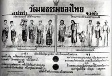 "Com o objetivo de elevar o espírito nacional e o código moral da nação e incutir tendências progressistas e uma novidade na vida tailandesa", uma série de mandatos culturais foi emitida pelo governo. Esses mandatos encorajaram todos os tailandeses a saudar a bandeira em locais públicos, conhecer o novo hino nacional e usar a língua tailandesa, e não dialetos regionais. As pessoas eram encorajadas a adotar trajes ocidentais, em oposição aos tradicionais. Da mesma forma, as pessoas eram encorajadas a comer com garfo e colher, em vez de com as mãos, como era habitual. Phibun viu essas políticas como necessárias, no interesse do progressismo, para mudar a Tailândia na mente dos estrangeiros de um país subdesenvolvido para um país civilizado e moderno.