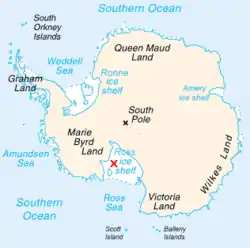 Para os exploradores antárticos posteriores que buscavam chegar ao Polo Sul, a plataforma de gelo Ross tornou-se uma área de partida. Em uma primeira exploração da área pela Expedição Discovery em 1901-1904, Robert Falcon Scott fez um estudo significativo da plataforma e seus arredores a partir da base de sua expedição na Ilha Ross. Pela medição de icebergs bezerros e sua flutuabilidade, ele estimou que a camada de gelo tinha em média 274 metros de espessura; a morfologia não perturbada da camada de gelo e seu perfil de temperatura invertido levaram-no a concluir que estava flutuando sobre a água; e medições em 1902-1903 mostraram que ele havia avançado 555 metros para o norte em 13,5 meses. Os resultados foram apresentados em uma palestra intitulada "Universitas Antarctica!" dada em 7 de junho de 1911 e foram publicados no relato da segunda expedição de Scott (a Expedição Terra Nova de 1910-1913).[5][6]