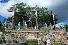O terreno do Cruzeiro foi comprado a Manuel Félix de Sousa, no dia 13 de maio de 1932, cujo valor foi de cem mil reis. No dia 31 de outubro do mesmo ano, uma sexta-feira por volta das 3 horas da tarde, a comunidade religiosa de Poção em procissão; e da cidade até o monte se conduzia uma cruz de madeira que fora colocada no Alto das Bem-Aventuranças. O vigário da freguesia era o franciscano Frei Estêvão e o bispo da diocese era Dom José de Oliveira Lopes, que ordenou a bênção da cruz pelos missionários Frei Bernardo e Frei Egídio. Em 1936 neste local é celebrada a primeira missa pelo Frei Eudorico. No ano de 1964, o primeiro delegado e subtenente de Poção, João Cordeiro, foi ao leste da cidade conduzindo o povo católico e pediu que se fizesse a limpeza em torno da cruz, logo após construíram uma estrada de acesso ao monte.