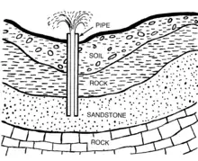 Geralmente são abertos em um aquífero confinado entre dois aquicludes, com o intuito de aproveitar a pressão da água, suficiente para promover a sua subida para a superfície. Assim, não há a necessidade de bombeamentomecânico[1], necessitando apenas de instalação de equipamentos para controlar a saída da água.