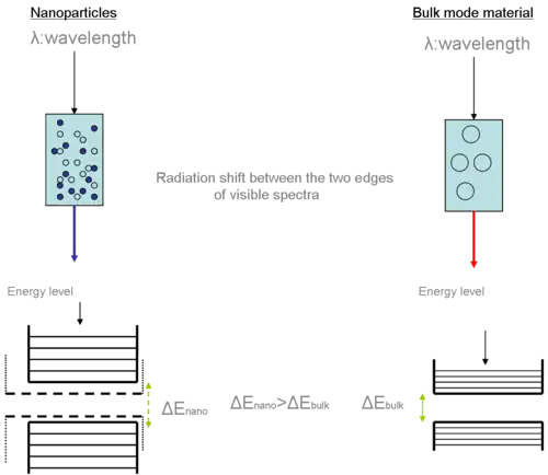 O confinamento quântico pode ser observado quando o diâmetro de confinamento do sistema for da mesma ordem de magnitude do comprimento de onda de de Broglie da partícula confinada. O potencial confinador pode ter origem em barreiras de potenciais devidos a interfaces entre estruturas ou em campos aplicados ao sistema. As propriedades eletrônicas e ópticas do material são significativamente afetadas quando suas dimensões são drasticamente alteradas. Isso se deve basicamente por serem mais pronunciados os efeitos causados pelo confinamento em certa direção do material, dentre eles pode-se perceber que existe uma quantização da energia que as partículas podem assumir.