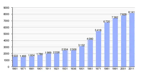 | Variação demográfica do município entre 1861 e 2011[3] |