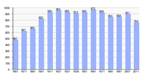 | Variação demográfica do município entre 1861 e 2011[3] |