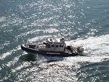 Um barco de patrulha, utilizado pela Polícia portuária de Los Angeles