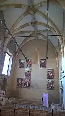 Das pinturas subsistentes, cinco reportam-se à vida de Santiago - Jesus envia Santiago e São João em Missão Apostólica, Pregação de Santiago, Conversão de Hermógenes, Condução do corpo de Santiago ao paço da rainha Loba e Santiago combatendo os Mouros, e outros três respeitam à Ordem de Santiago e ao seu primeiro Grão Mestre - Investidura de um Mestre da Ordem de Santiago, Entrega da bandeira a um Mestre da Ordem de Santiago e Aparecimento da Virgem a um Mestre da Ordem de Santiago.[1]