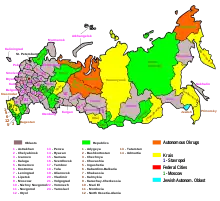 A Federação Russa fez poucas mudanças no padrão soviético de jurisdições regionais. A constituição de 1993 estabelece um governo federal e enumera oitenta e nove jurisdições subnacionais, incluindo vinte e um enclaves étnicos com o status de repúblicas. Existem dez regiões autônomas (okrug) e o Oblast Autônomo Judaico (Yevreyskaya avtonomnaya oblast, também conhecido como Birobidjan). Além das jurisdições etnicamente identificadas, existem seis territórios (kray) e quarenta e nove oblasts (províncias). As cidades de Moscou e São Petersburgo são independentes das jurisdições vizinhas por serem "cidades de significado federal", tendo o mesmo status que os oblasts. As dez regiões autônomas e Birobidjan fazem parte de jurisdições maiores, seja um oblast ou um território. À medida que o poder e a influência do governo central se diluíram, os governadores e prefeitos tornaram-se as únicas autoridades governamentais relevantes em muitas jurisdições.