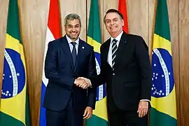 Bolsonaro viajou em 26 de fevereiro para a fronteira com o Paraguai para anunciar, ao lado de seu homólogo, Mario Abdo Benítez, a nomeação das novas autoridades da Hidrelétrica de Itaipu, a que os dois países compartilham no rio Paraná. No discurso, o líder brasileiro fez elogios ao ditador paraguaio Alfredo Stroessner, o homem que controlou o Paraguai com mão de ferro entre 1954 e 1989.[35] A hidrelétrica só foi possível, disse ele, "porque do outro lado havia um homem com visão, um estadista que sabia perfeitamente que seu país, o Paraguai, só poderia continuar progredindo se tivesse energia". O saldo de 35 anos de ditadura foi elevado. Quando um golpe palaciano expulsou Stroessner do poder em 1989, 336 pessoas estavam desaparecidas, 19.862 pessoas haviam sido presas e outras 20.000 haviam sido torturadas.[35] O Governo militar enviou 3.479 paraguaios ao exílio, segundo números da Comissão da Verdade e Justiça, que investigou o passado com a chegada da democracia.[35][36]