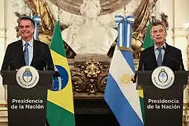 O presidente argentino, Mauricio Macri, foi o primeiro chefe de estado a fazer uma visita oficial ao Brasil após a posse de Bolsonaro,[21] ele esteve em uma reunião com o presidente brasileiro no Palácio do Planalto onde conversaram sobre o futuro do Mercado Comum do Sul (Mercosul) e sobre a crise na Venezuela.[22] Após a reunião, ambos líderes assinaram um acordo de extradição, que na prática facilita o processo.[23]