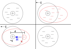 Moléculas polares são aquelas que possuem momento de dipolo mesmo na ausência de campos elétricos externos. Tais moléculas, na presença deste um campo elétrico sofrem um torque dado por:[1]