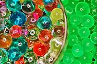- polímero superabsorvente. O poliacrilato de sódio, que contem ligações cruzadas, são designados como "superabsorventes" e "cristais de água" e são utilizados em fraldas absorventes.[1] Copolímeros contendo o poliacrilato são utilizados na agricultura e em aplicações especiais com agente absorvente. As origens dos estudos químicos dos polímeros superabsorventes remontam do início dos anos 1960, quando o Departamento de Agricultura dos Estados Unidos desenvolveu os primeiros materiais usando esta substância. Poliacrilato também está presente no vestuário de absorvência máxima utilizado pela NASA.