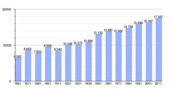 | Variação demográfica do município entre 1861 e 2011[3] |