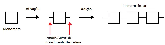 Os polímeros são compostos por macromoléculas, obtidos através de reação química de polimerização de compostos simples denominados monômeros, que dá origem aos polímeros. Os processos de polimerização foram dividos por Flory (1953) e Carothers (Mark 1940), em dois grupos: polimerização por condensação e polimerização por adição; em outras palavras: reação gradual e reação em cadeia[1]. Na formação de polímeros, a Condensação ou reação gradual ocorre entre duas moléculas polifuncionais para produzir uma molécula polifuncional maior, com a eliminação de sub-produtos como a água. A polimerização por adição ou reação em cadeia envolve reações nas quais o transportador de corrente pode ser um íon ou uma substância reativa com um elétron não emparelhado chamado: radical livre. Um radical livre é dominado pela decomposição de um material relativamente instável chamado iniciador. O radical livre é capaz de reagir para abrir a ligação dupla de um monômero e adicionar a ele, um elétron que permanece inalterado. Durante um tempo muitos outros monômeros se adicionam sucessivamente à cadeia crescente ate, finalmente, dois radicais livres reagem para encerrar a atividade de crescimento e formar uma ou mais moléculas de polímero.