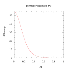 - Um politropo com índice n = 3 é um bom modelo para núcleos de anãs brancas de massas mais altas, de acordo com a equação de estado de matéria degenerada relativística.[5]
