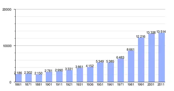 | Variação demográfica do município entre 1861 e 2011[3] |