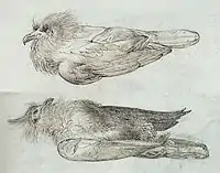 - Tradução livre de: "When she was a girl and used to go into the forest with her father de Chazal, she has seen quantities of Pigeon Hollandais and Merles [Hypsipetes olivaceus], both species were so tame they might be knocked down with sticks, & her father used to kill more that way than by shooting them, as she was a nervous child. Her father always warned her before he fired, but she would entreat him to knock the bird down with his stick & not to shoot it – she said the last Pigeon Hollandais she saw was about 27 years ago just after she married poor old Moon, it was brought out of the forest by a marron. She said it was larger than a tame pigeon & was all the colours of the rainbow, particularly about the head, red, green & blue."