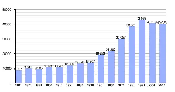 | Variação demográfica do município entre 1861 e 2011[3] |