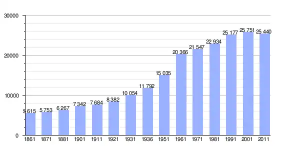 | Variação demográfica do município entre 1861 e 2011[4] |