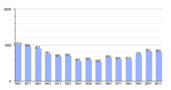 | Variação demográfica do município entre 1861 e 2011[3] |