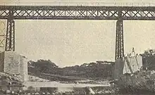 A adjudicação da construção da nova ponte foi de 2.325.000$00, tendo as obras começado em Março de 1932, pela Direcção Geral de Caminhos de Ferro.[2][1][5] A conclusão estava prevista para Setembro de 1933, mas foi atrasada devido a obras imprevistas nos fundamentos.[2] Com efeito, os trabalhos foram complicados pelo facto dos novos pilares se encontrarem muito próximos dos antigos, e devido à natureza dos terrenos, compostos por xistos brandos, argilas plásticas e quartzitos.[1] Em Junho de 1933, já se tinha terminado a fundação dos encontros, tendo os pilares ficado a meia altura, na alvenaria em elevação.[1]