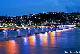Vista noturna da Ponte Florentino Avidos sobre o rio Doce