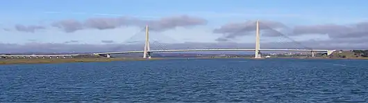 ![]() Vista aérea da foz do Guadiana. A ponte situa-se em cima à direita. |