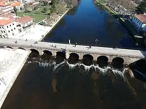 Ponte romana, erguida entre fins do século I e o início do II. A par do desenvolvimento das termas, constitui um dos melhores legados romanos da antiga Águas Flávias, que prevalece até aos nossos dias, resistindo a históricas cheias, e às fortes correntes do rio.
