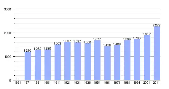 | Variação demográfica do município entre 1861 e 2011[3] |