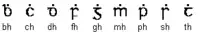 - Na língua asturiana usa Ḷ como consoante retroflexa plosiva sonora. Também usa Ḥ como fricativa glotal surda.