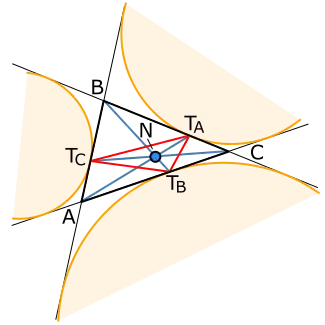 Dado um triângulo ABC, sejam TA, TB e TC os pontos extratangentes nos quais o A-excírculo encontra a linha BC, o B-excírculo encontra a linha CA, e o C-excírculo encontra a linha AB, respectivamente. As linhas ATA, BTB, CTC concorrem no ponto de Nagel N do triângulo ABC.