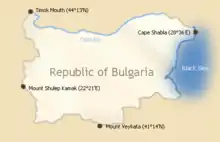- Ponto mais oriental: cabo Shabla, província de Dobrich. (🌍)