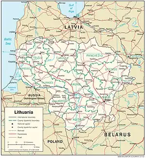 - Ponto mais setentrional: Perto da antiga vila de Lemkinè, nas margens do Rio Nemunėlis, no Biržai (🌍)