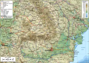 - Ponto mais alto: Monte Moldoveanu, Montes Făgăraş, 2544 m