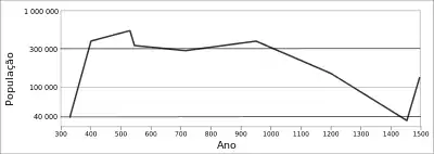 ![]() Gráfico da evolução demográfica de Constantinopla |