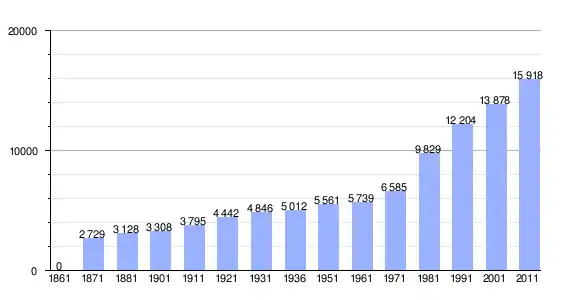 | Variação demográfica do município entre 1861 e 2011[3] |