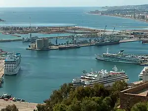 O porto de Málaga tem três mil anos desde a antiguidade. Ele fica no Mar Mediterrâneo, ao sul da Península Ibérica, na cidade de Málaga (na Espanha), na baía natural de Málaga ().