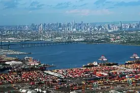 O Porto de Nova Iorque e Nova Jérsei é o maior porto importador de petróleo e o terceiro maior porto de contêineres do país.[5] A atividade comercial do porto da cidade de Nova Iorque, incluindo as orlas dos cinco distritos e cidades vizinhas em Nova Jérsei, desde 1921, foi formalizada sob uma Autoridade Portuária de Nova Iorque e Nova Jérsei.[6] Desde os anos 1950, o porto comercial de Nova Iorque e Brooklyn foi quase completamente eclipsado pelas instalações de contêineres no Terminal Marítimo de Newark-Elizabeth, na Baía de Newark, que é o maior porto da costa leste. O porto diminuiu em importância para viagens de passageiros, mas a Autoridade Portuária ainda opera os três principais aeroportos da Região Metropolitana de Nova Iorque.[7]